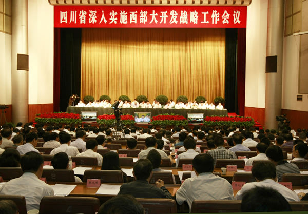 2010年9月1日至2日,四川省深入实施西部大开发战略工作会议在成都举行。省委书记、省人大常委会主任刘奇葆,省委副书记、省长蒋巨峰发表重要讲话。省政协主席陶武先、省委副书记李崇禧出席会议。会议传达了中央西部大开发工作会议精神。省委常委、副省长魏宏作会议总结。成都、泸州、绵阳、遂宁、达州、凉山等市州和省委农工委、省发展改革委、省经信委、省交通运输厅、成都铁路局、中石油西南油气田公司等单位负责同志在会上作了发言。 会议采取电视电话会议的形式召开,省领导欧泽高、王少雄、李春城、李登菊、叶万勇、柯尊平、王怀臣、钟勉、黄新初、陈光志、甘道明、韩忠信、杨志文、张东升、黄彦蓉、张作哈、王宁、李成云、晏永和、吴正德、陈杰、陈次昌、解洪、张雨东、刘道平,省法院院长刘玉顺,省检察院检察长邓川,省军区司令员夏国富等在成都主会场出席会议。各市州、县市区设分会场。