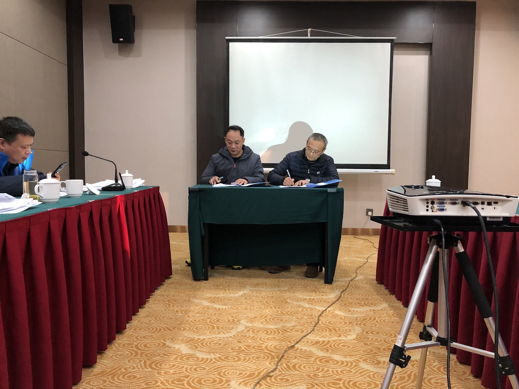 随后,公司董事长与公司新任总经理签订了“2021年经营管理合同”。董事会全体成员举手通过了“第四届董事会第一次会议决议”。