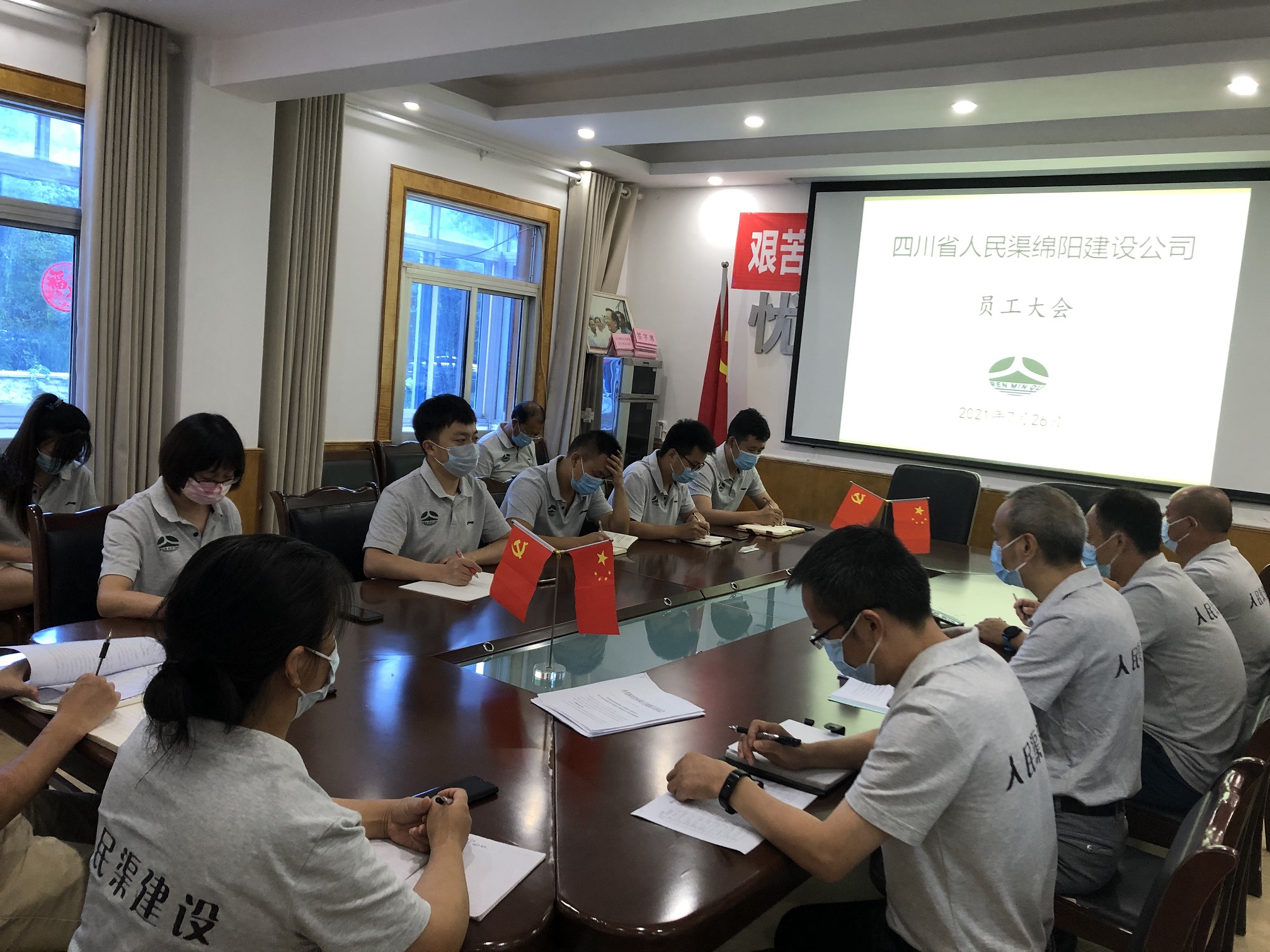 2021年7月26日下午,公司召开职工大会,传达学习郭亨孝厅长在水利厅机关职工大会上的讲话,安排部署公司员工作风整顿实施方案。会议由公司董事长、支部书记杨奎主持,公司全体职工参加会议。