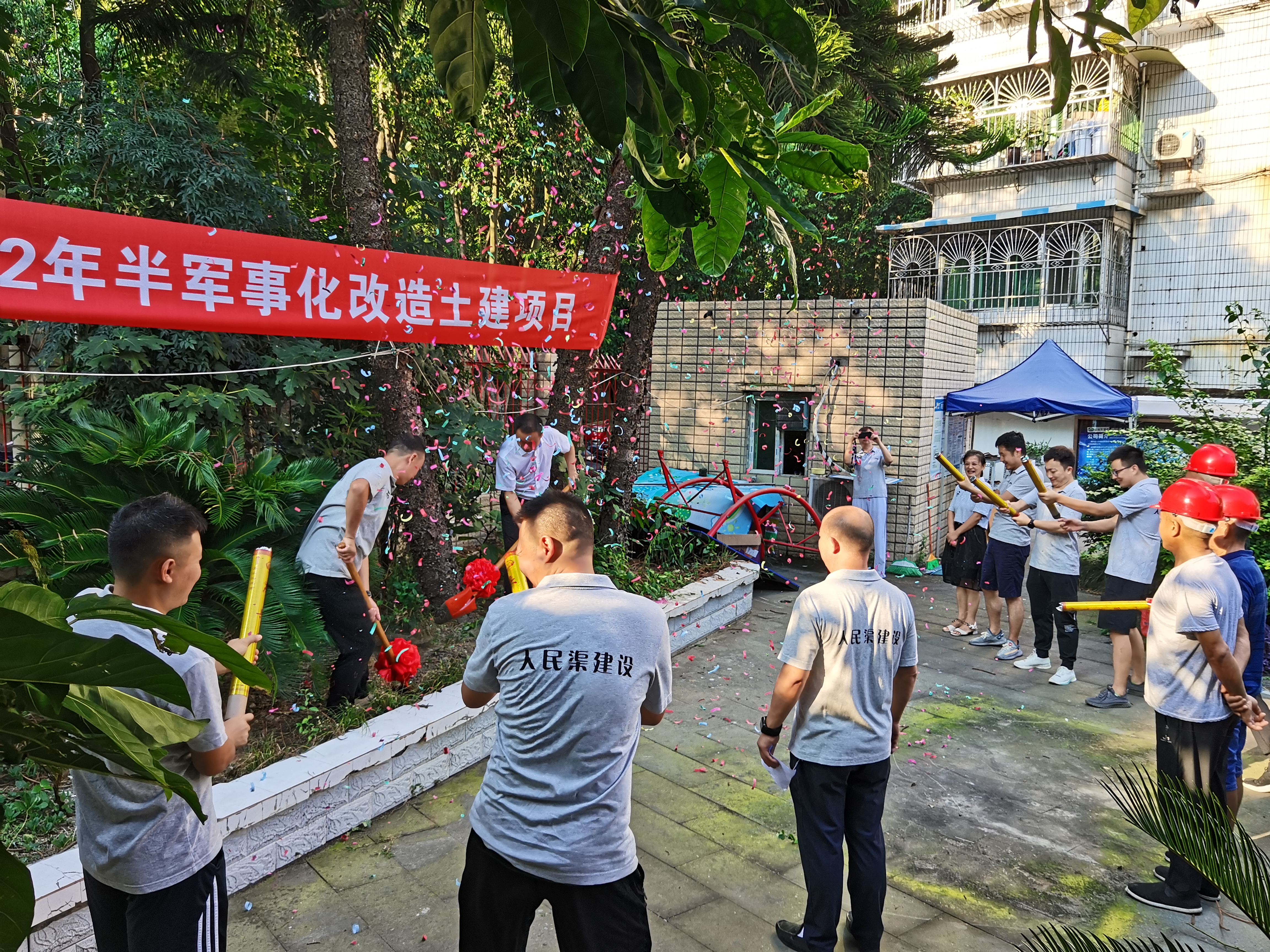 2022年8月21日上午8:08,四川省人民渠建设有限责任公司半军事化改造工程正式开工,公司董事长、公司领导班子分别致辞。开工仪式上,领导班子希望通过本次改造工程,提升公司整体形象,公司董事长对半军事化管理的意义再次强调,并对施工管理提出要求。
