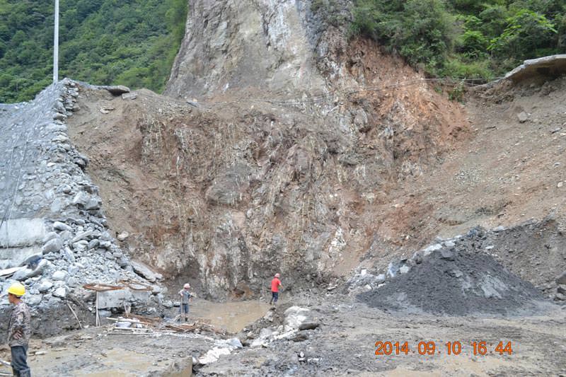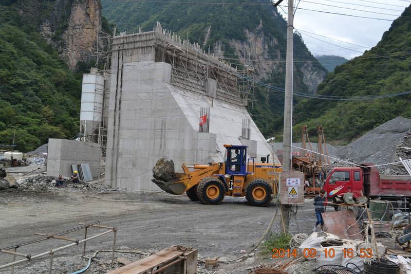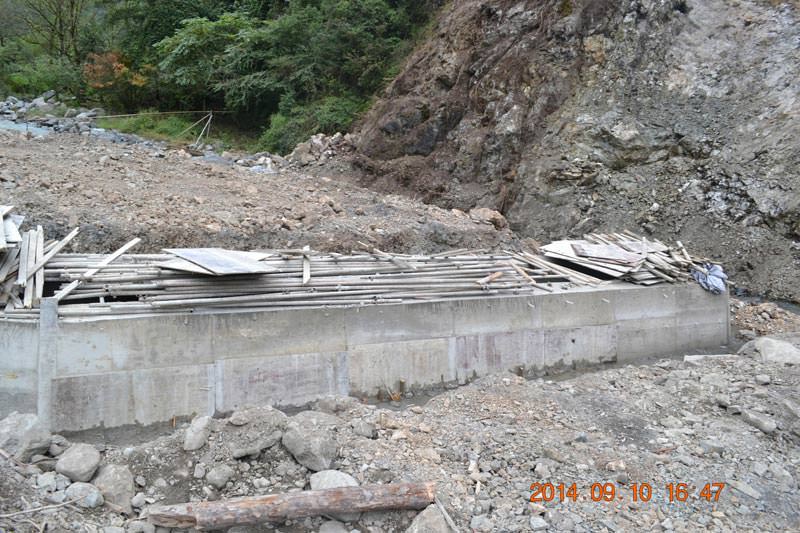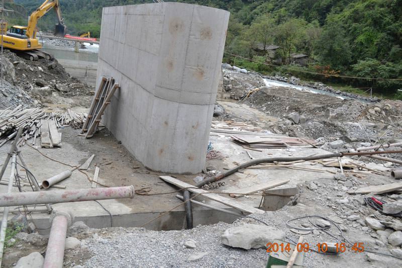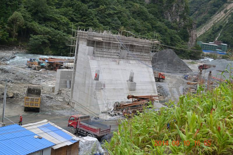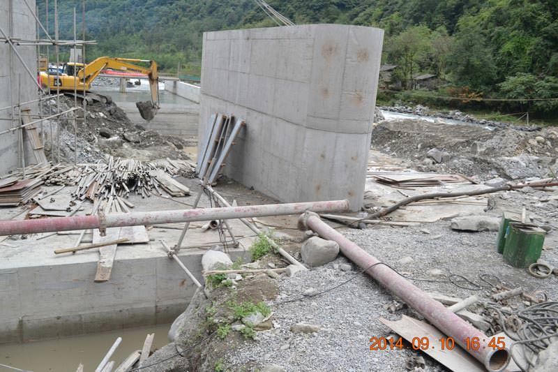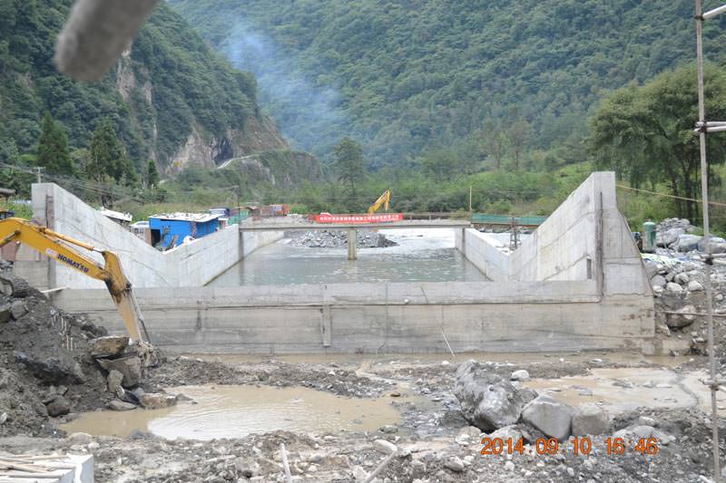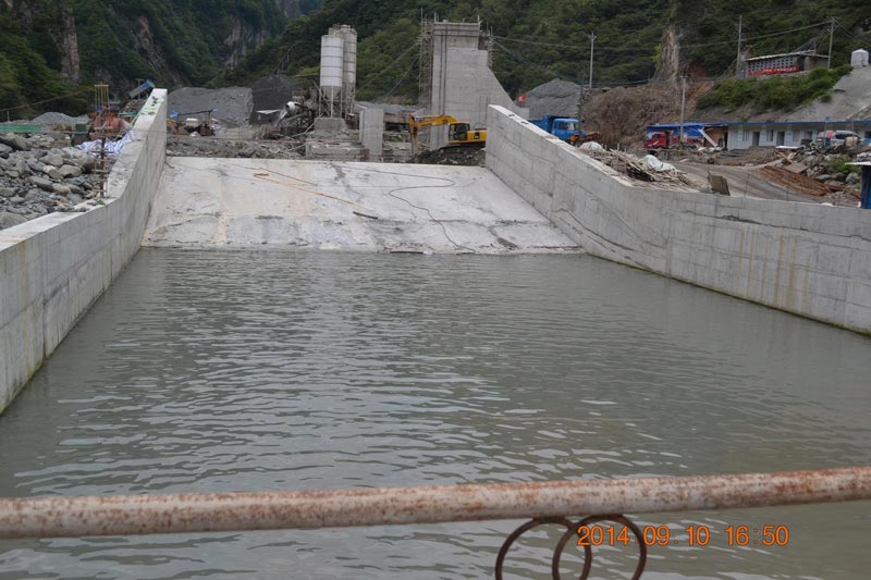 宝兴县出居沟水电站工程概 一、大坝护坦:全长110米,底板宽25米;后接53米C10毛石砼边墙。